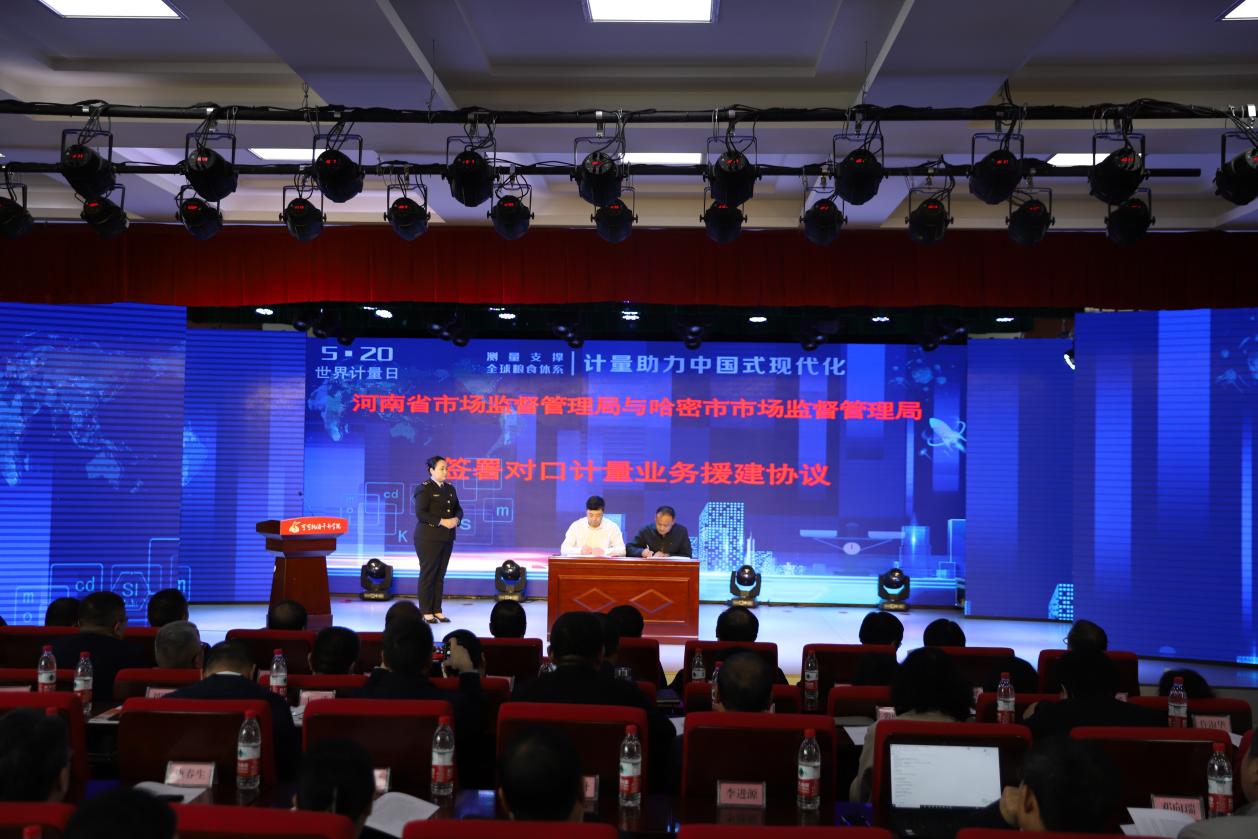 河南省市场监督管理局与新疆维吾尔自治区哈密市市场监督管理局签署对口计量业务援建协议。