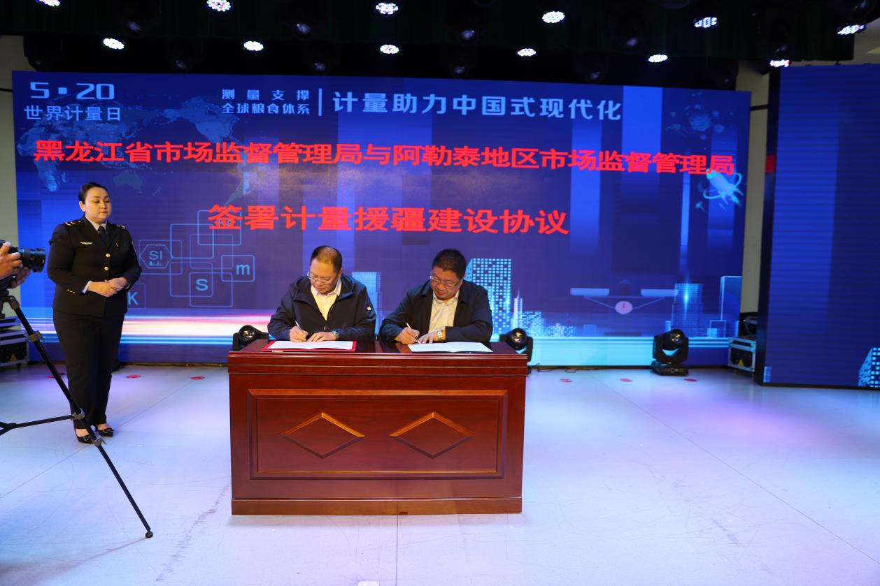 黑龙江省市场监督管理局与新疆维吾尔自治区阿勒泰地区市场监督管理局签署计量援疆建设协议。