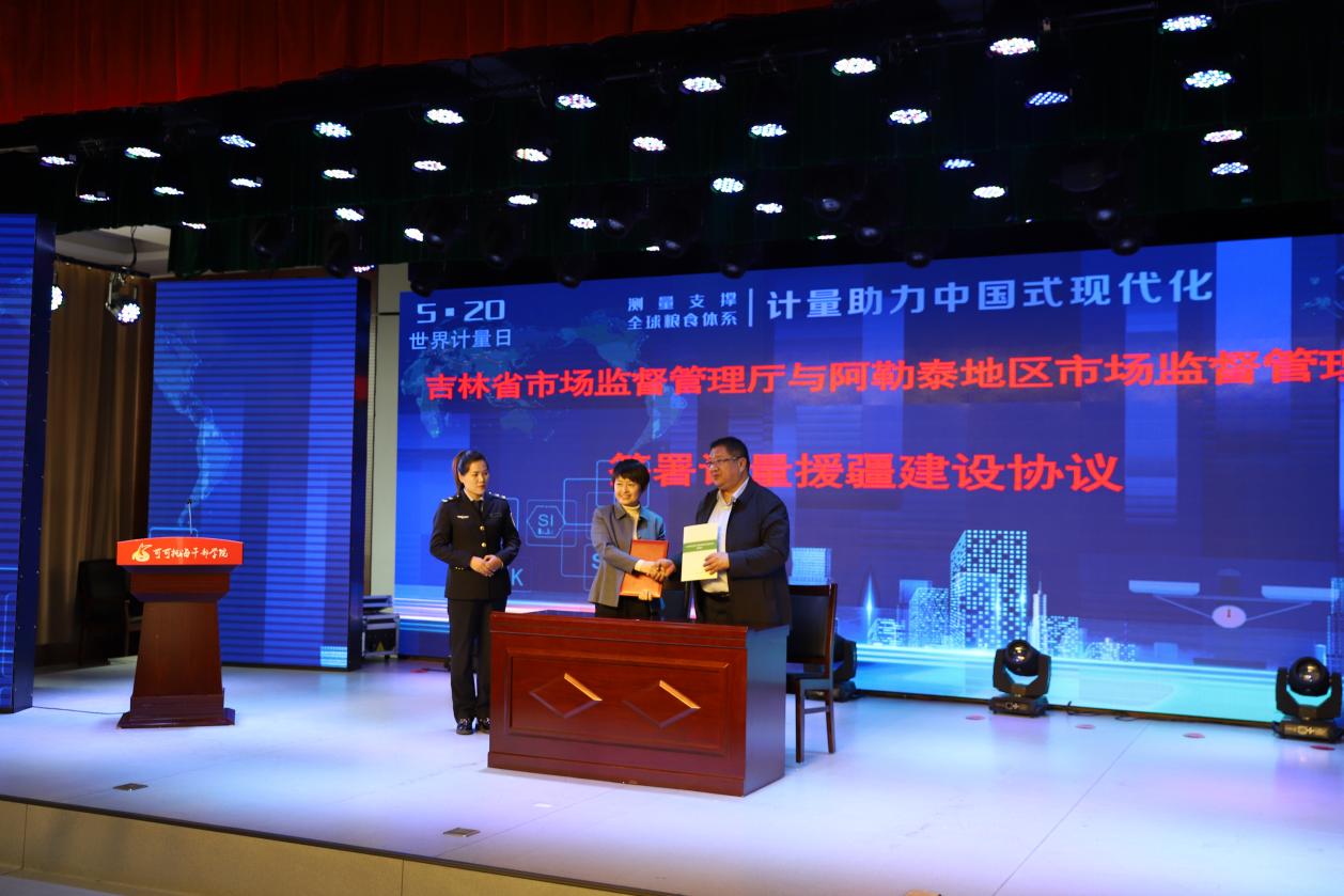 吉林省市场监督管理厅与新疆维吾尔自治区阿勒泰地区市场监督管理局签署计量援疆建设协议。