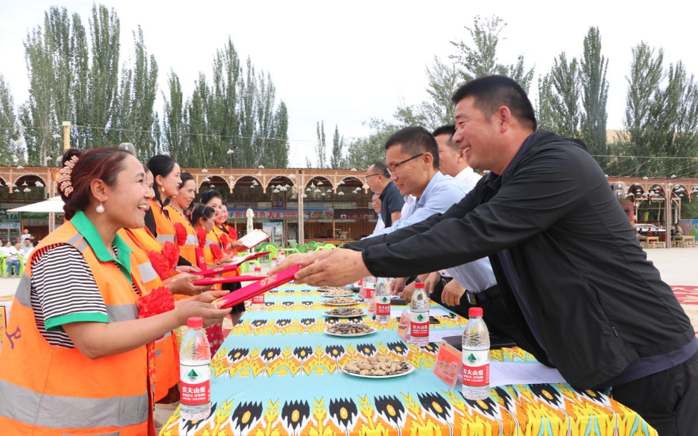 活动中,表彰了帕坦木·克然木等20名先进工作者代表,为她们颁发了荣誉证书和奖品。新疆星宇建设工程有限公司、新疆鑫磊建筑安装有限公司等企业捐款捐物,向环卫工人致以节日的问候,表达崇高的敬意。同时环卫工人为爱心企业赠送了锦旗。