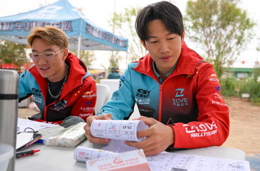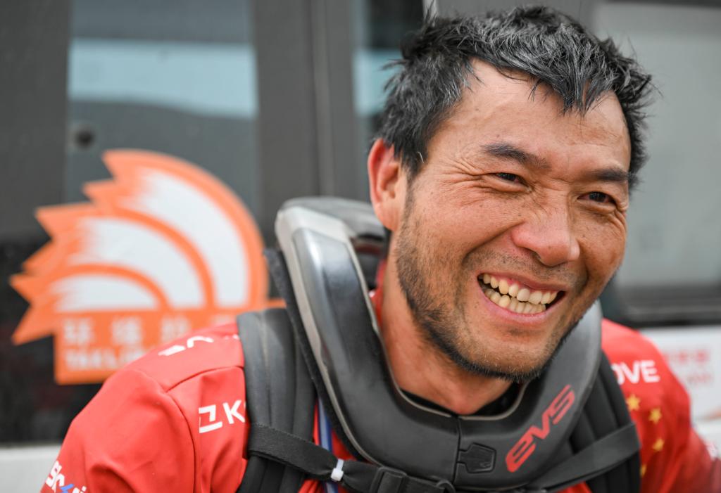重庆凯越越野车队车手方明集在2023年环塔拉力赛第三特殊赛段比赛后(5月23日摄)。新华社记者 胡虎虎 摄