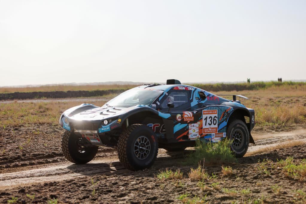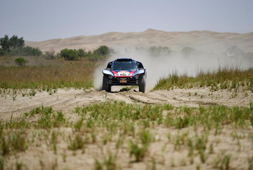 5月29日,陕西云翔汽摩运动有限公司车手张国宇、西班牙领航员奥里奥尔驾驶赛车在比赛中。新华社记者 胡虎虎 摄