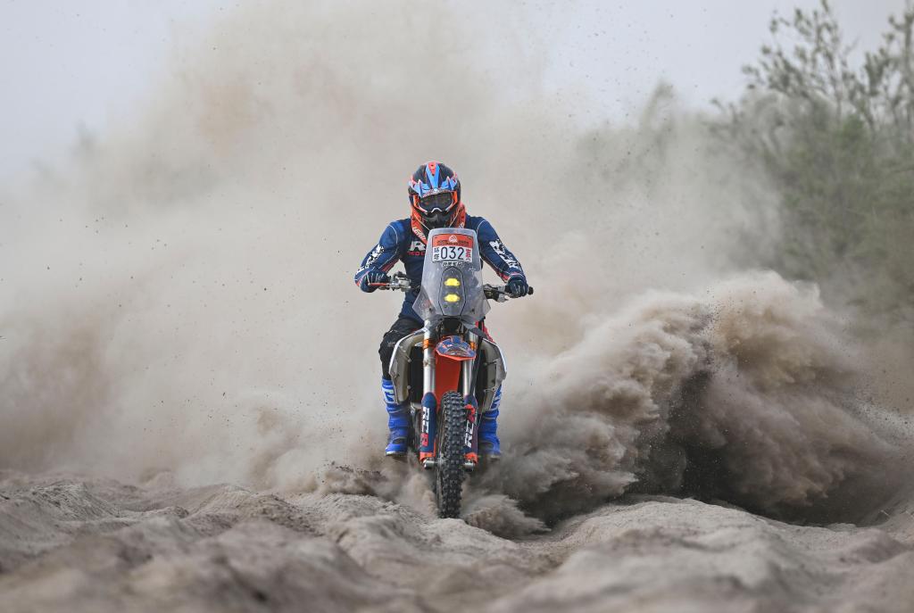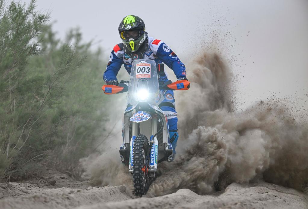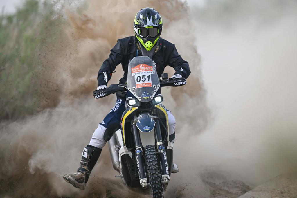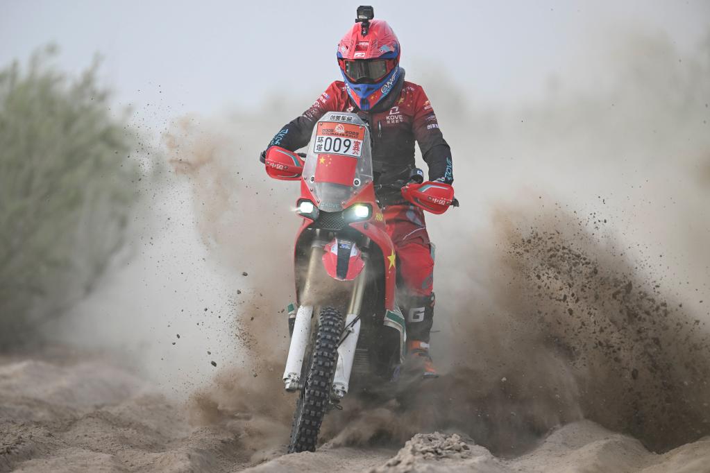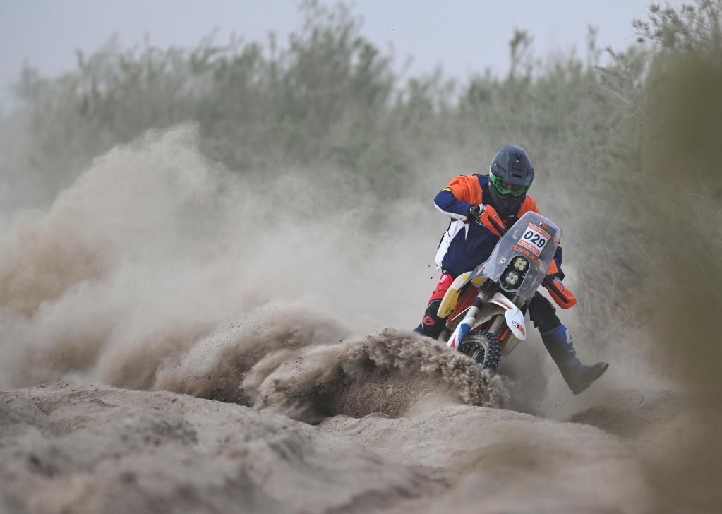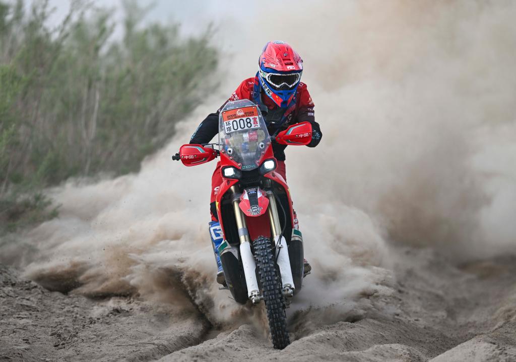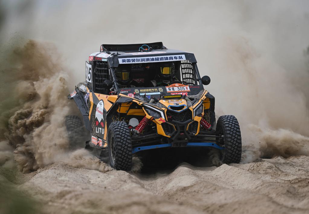 5月30日,月风拉力车队车手董超在比赛中。新华社记者 胡虎虎 摄