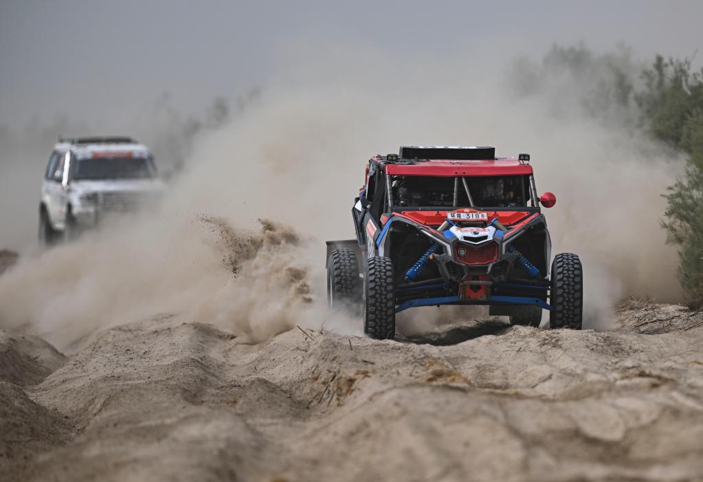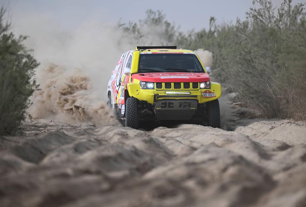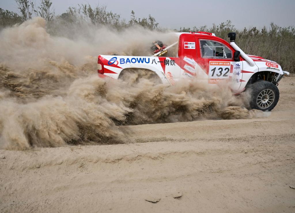 当日,2023年中国环塔(国际)拉力赛暨中国汽车越野拉力锦标赛新疆分站赛完成第八赛段的比赛。该赛段位于新疆和田地区民丰县,全长约186公里。在风沙天气中,赛手们接连驶过砂石路、翻越沙丘、穿过干涸的河床,抵达终点。