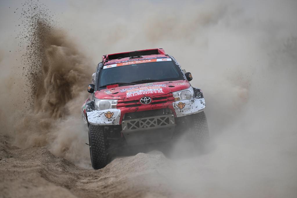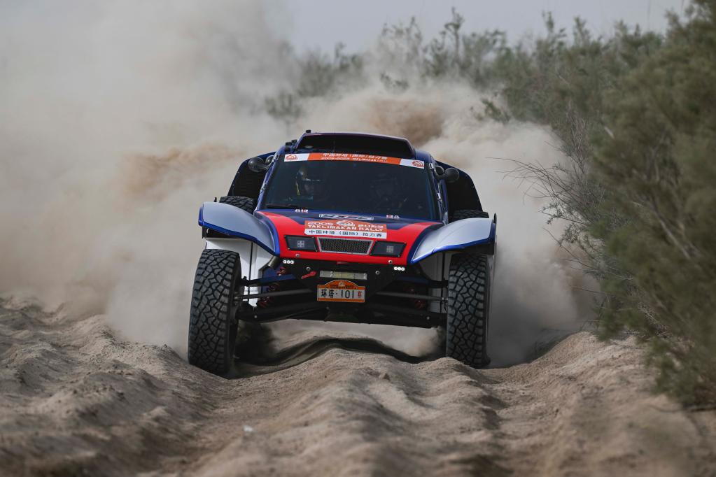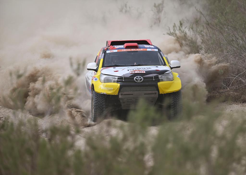 5月30日,八一钢铁车队车手张天化、领航员姚勇驾驶赛车疾驰在赛道上。