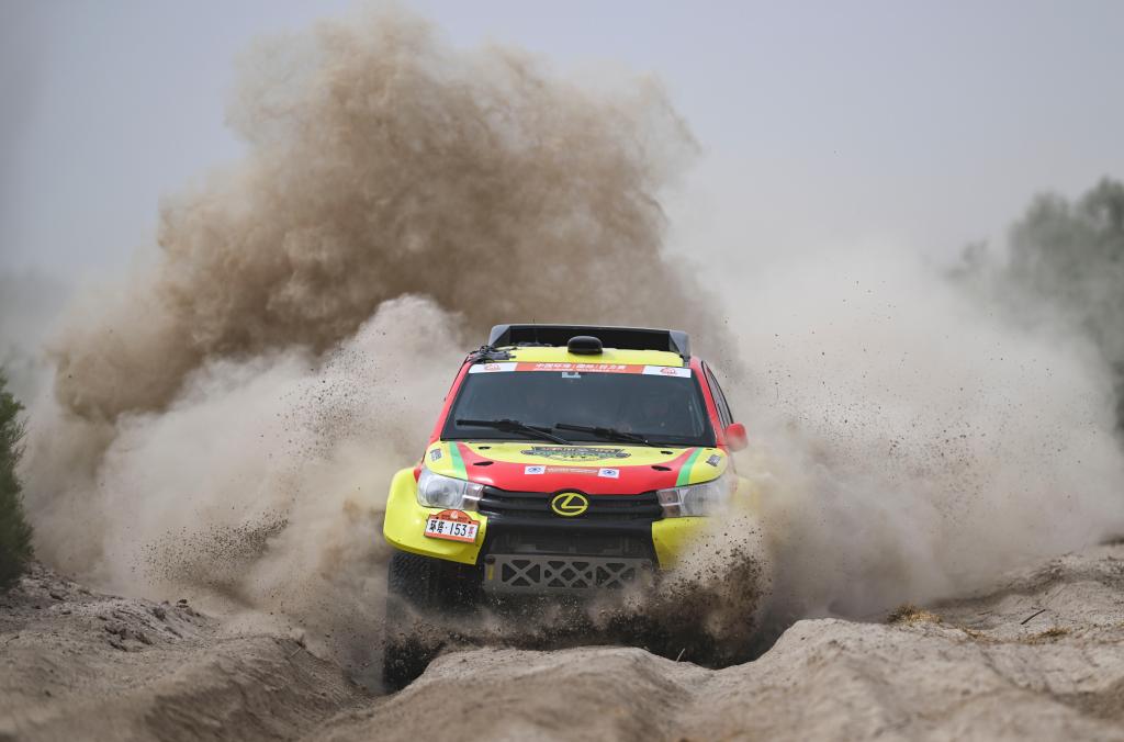 5月30日,巨匠应急拉力车队车手阎乐、领航员谢晖驾驶赛车在比赛中。新华社记者 胡虎虎 摄
