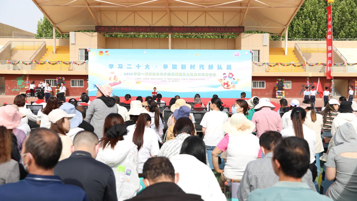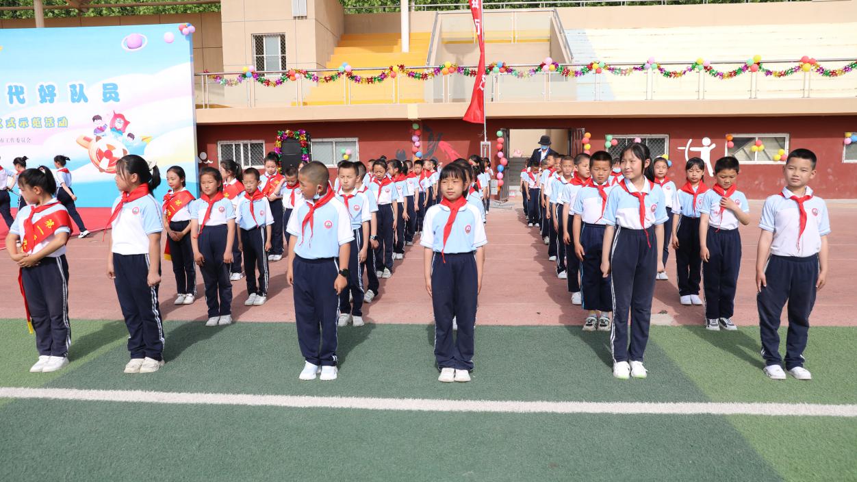 活动现场,鲜艳的五星红旗迎风飘扬,少先队旗帜高高矗立,为仪式增添了庄重的氛围,百余名新队员整齐地站立在队伍中,脸上洋溢着期待和憧憬的笑容。