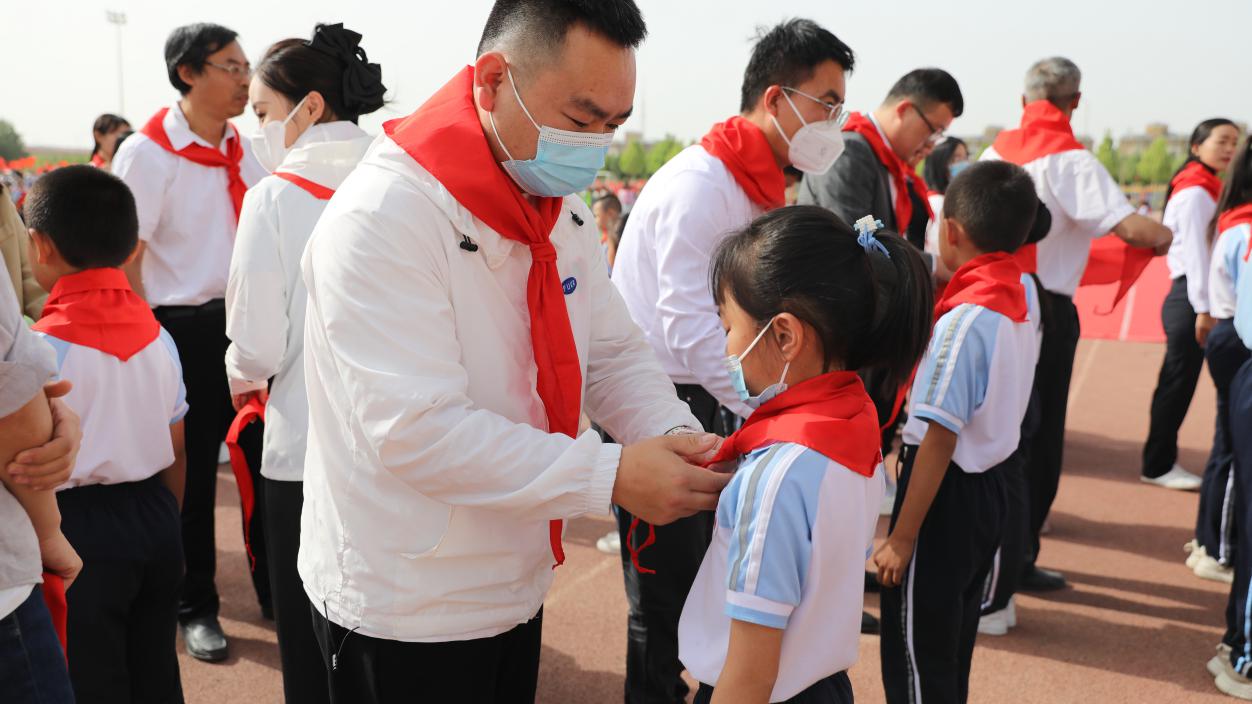 在队旗的见证下,参加活动的领导、嘉宾及老队员为新队员佩戴红领巾,随后,百余名新队员肃立在队旗下,高举右拳,郑重宣誓:“我志愿加入中国共产主义少年团,为共产主义事业奋斗终身……”。活动现场气氛庄重,场面感人。他们庄严承诺,要继承少先队的优良传统,积极学习,努力锻炼自己的品格,以身作则,争做新时代好队员。