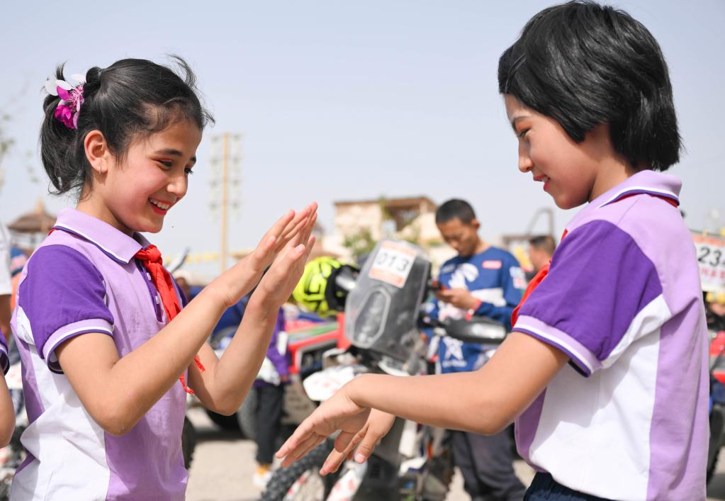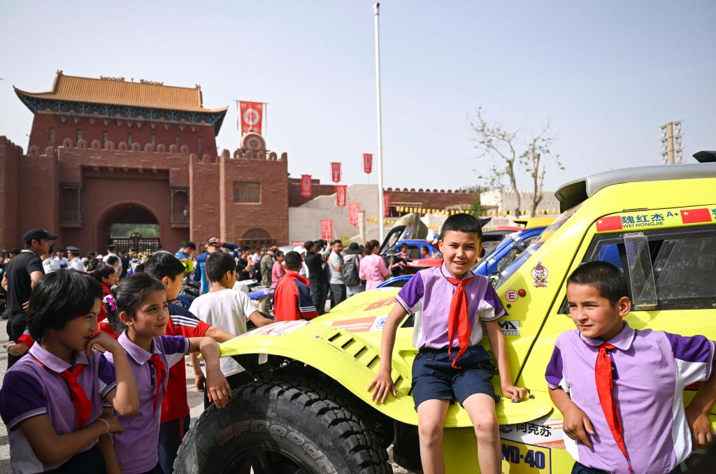当日,环塔拉力赛赛车队代表来到新疆和田约特干故城景区,与当地小朋友们一起进行“童心许愿·点燃梦想”活动。2023年中国环塔(国际)拉力赛暨中国汽车越野拉力锦标赛新疆分站赛于6月1日在和田收车。