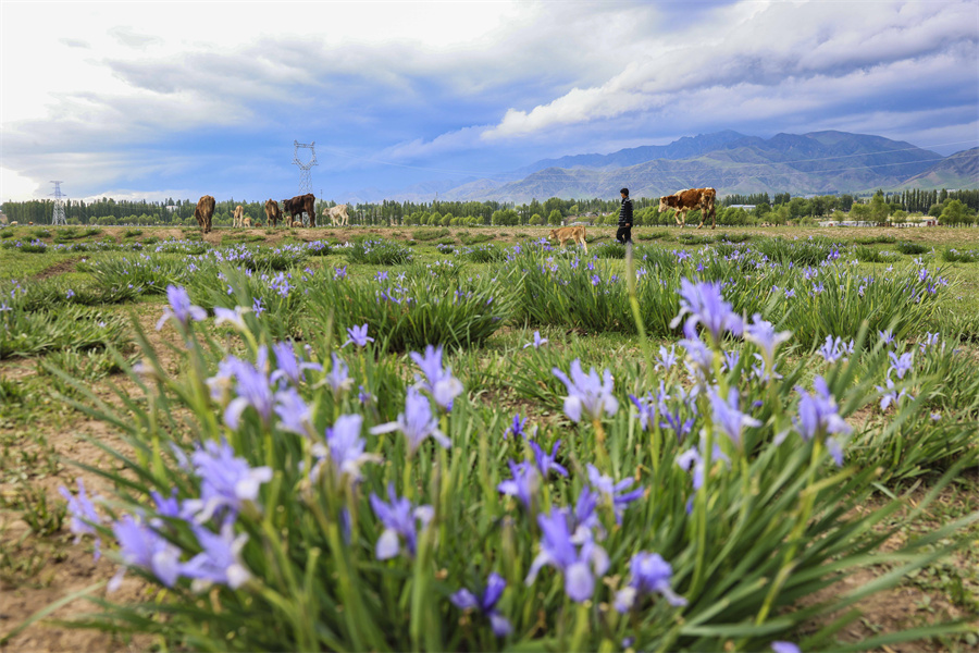 在新源县山谷深处,一簇簇、一丛丛马兰花悄然绽放。 张文庭 摄