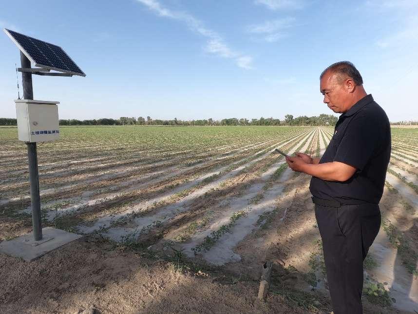 近日,记者走进新疆生产建设兵团第一师阿拉尔市十二团塔南镇5连的一块棉田,映入眼帘的是绿油油的棉苗,泵房管理员孔祥华在手机上轻轻一点,田间的电动三通球阀自动打开,掩埋于地膜下的滴灌带自动将水肥精准送到农作物根系,满足作物生长需求。