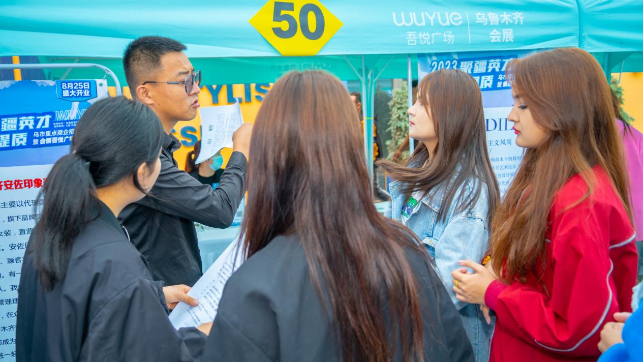 会展吾悦广场作为水磨沟区首个大型综合型商业体,将在今年8月25日正式开业。在今天的招聘会上,会展吾悦广场联合场内商户,包括国际一线妆品及国际精品、餐饮品牌、新兴能源品牌、娱乐体验品牌,为广大求职者提供了超过2000个优质岗位。