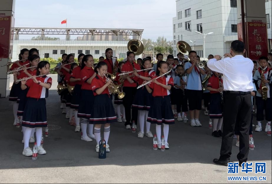 20日,乌鲁木齐第137小学学生在老师指挥下演奏歌曲。新华网发 杨丽萍摄