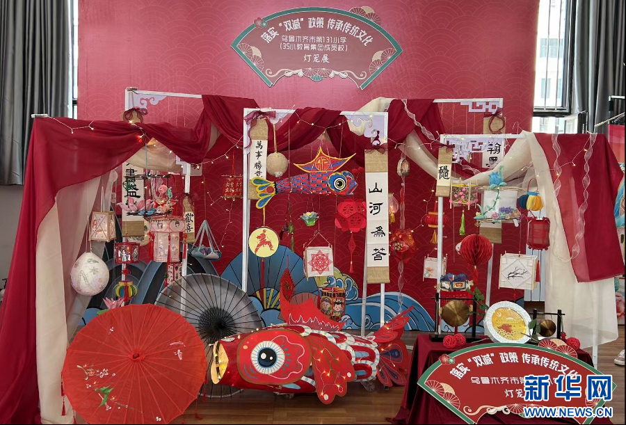 乌鲁木齐第131小学学生的灯笼作品展。新华网发 杨丽萍摄