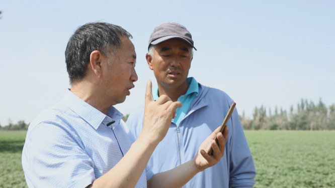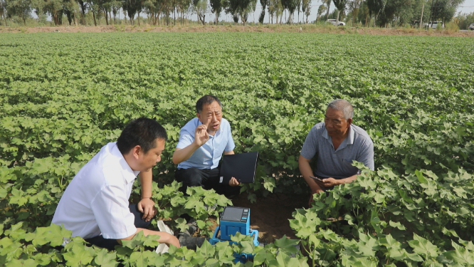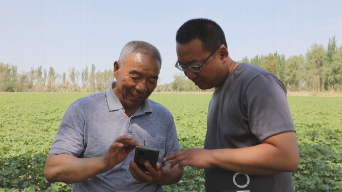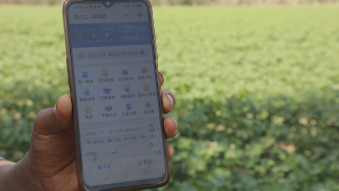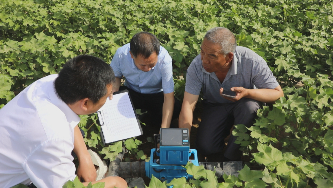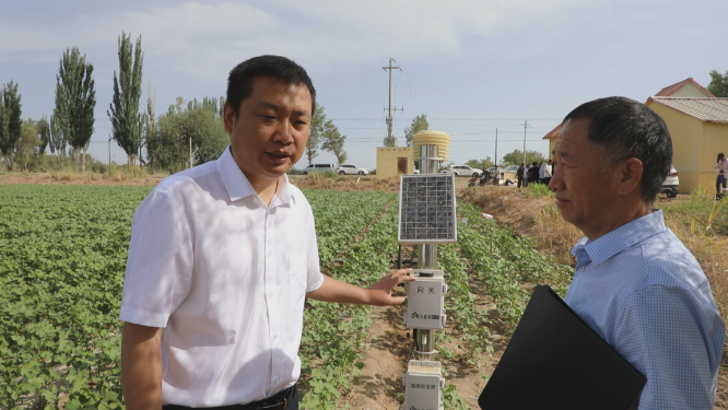 十团昌安镇十一连职工李作清种植的40亩棉花就在基地。他说:“棉花地安装了数智化管理系统后,通过手机我就可以了解棉花长势情况。现在棉花苗齐苗壮,实现了在家就能通过手机种植棉花。”