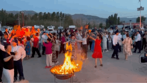 露营节当天,真正的重头戏在夜幕降临后。随着浪漫的烟花秀上演,璀璨的烟花将小镇的夜空装点得流光溢彩,氛围感拉满,也点燃了游客的欢乐与激情,纷纷拿出手机,记录这一美好时刻。随后,一场火热的篝火晚会更是将活动推向高潮。游客与当地民众以篝火为圆心,踏着音符翩翩起舞。