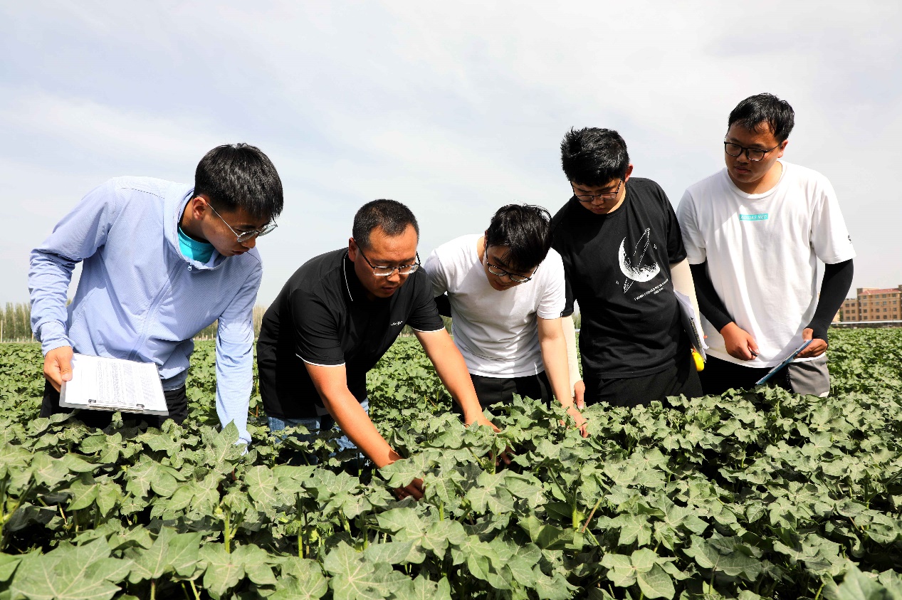 眼下正值棉花田间管理的关键时期,在新疆农业科学院第一师十六团综合试验站,科研人员正忙着在田间地头实地查看监测棉花品种的长势情况,做好试验棉花材料的田间管理调查,为持续优化棉花生产和品种布局,提升棉花品质打下良好基础。