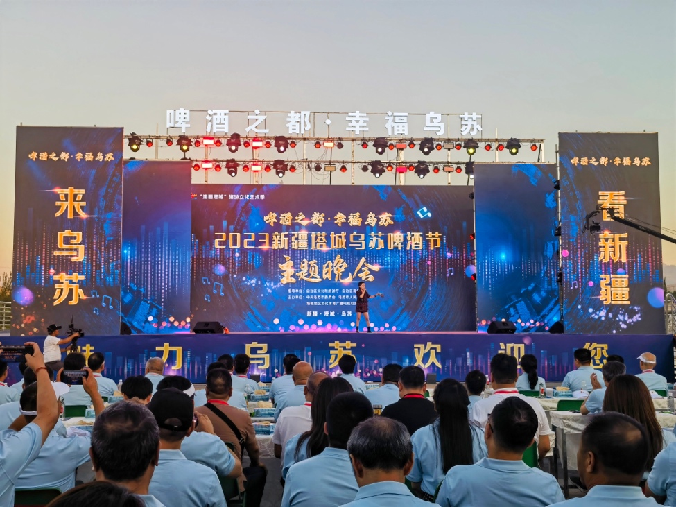 7月13日,2023年新疆塔城乌苏啤酒节主题晚会与“啤酒之都·光影盛宴”激光秀在乌苏市九莲泉水景公园莲花广场上演,拉开了啤酒节主体活动的序幕。特色歌舞、绚丽激光秀与璀璨的城市夜景交相辉映,为今年的啤酒节注入新的生机与活力。
