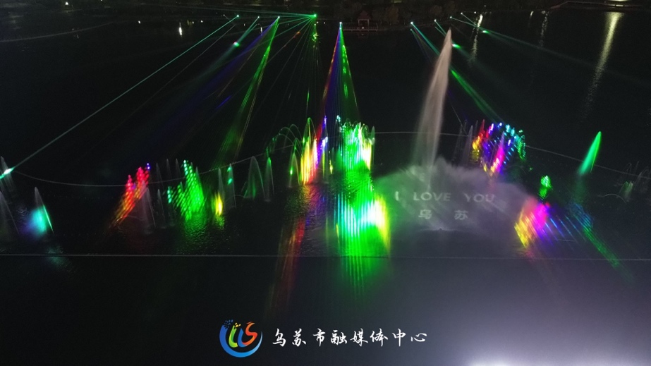 “啤酒之都·光影盛宴”激光秀 乌苏市融媒体中心供图