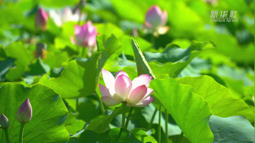 一池荷花,美了风景、沁了人心,在炎热夏天带给人阵阵清凉。
