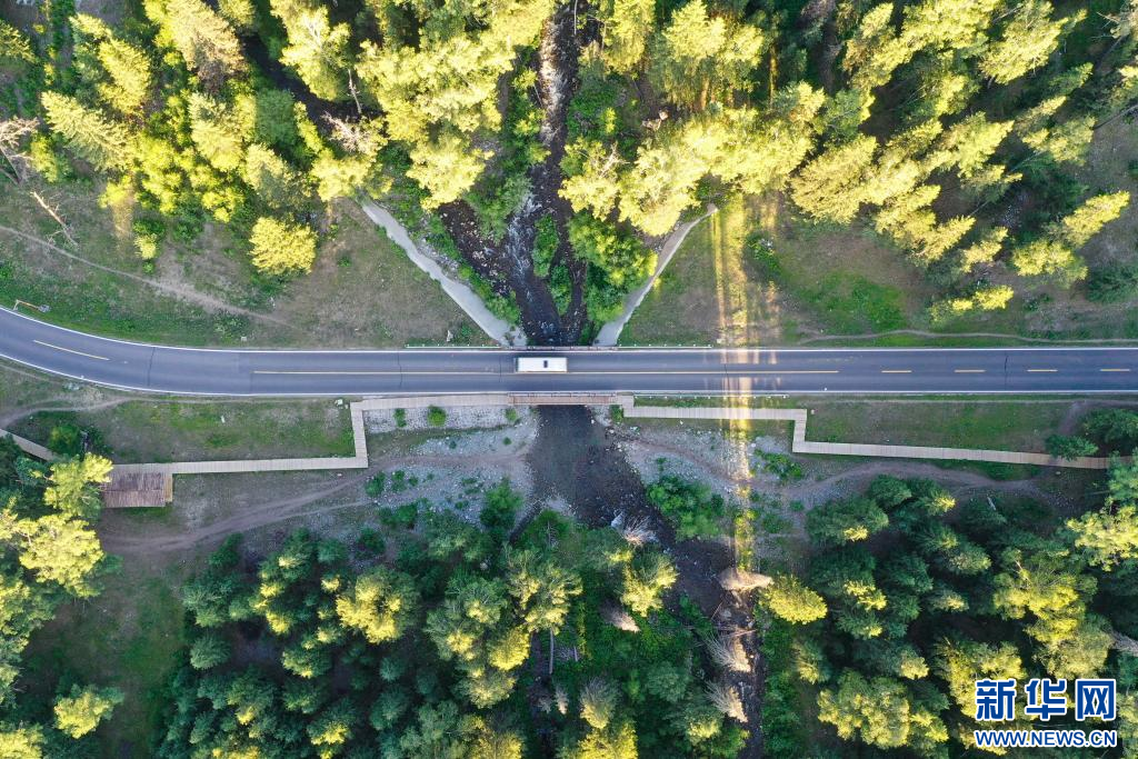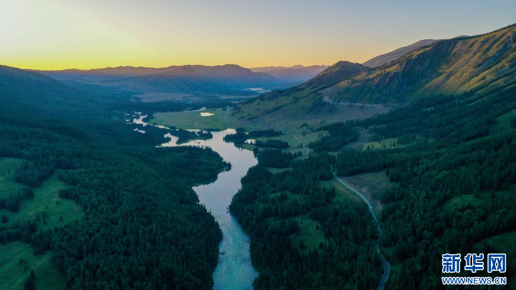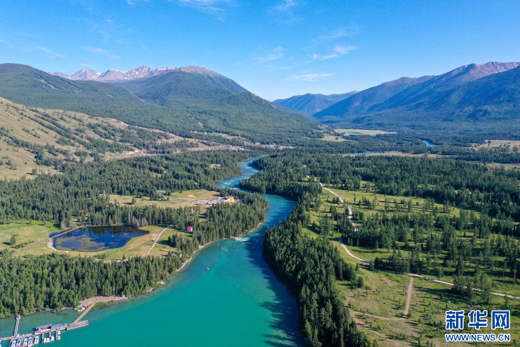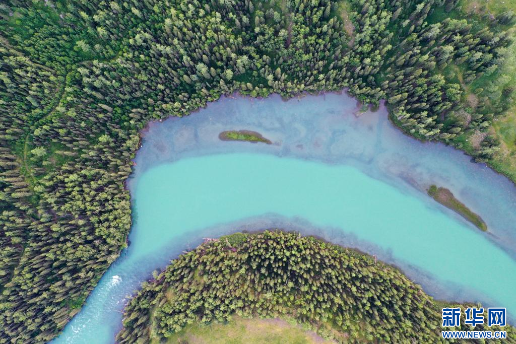 7月19日拍摄的新疆阿勒泰地区喀纳斯景区风光(无人机照片)。新华社记者 丁磊 摄pagebreak