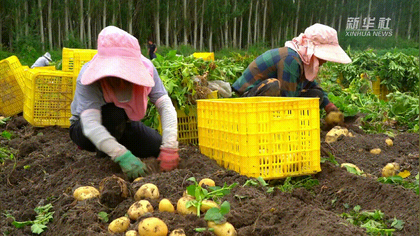 盛夏时节,新疆温宿县托乎拉乡、托甫汗镇的土豆迎来丰收季。