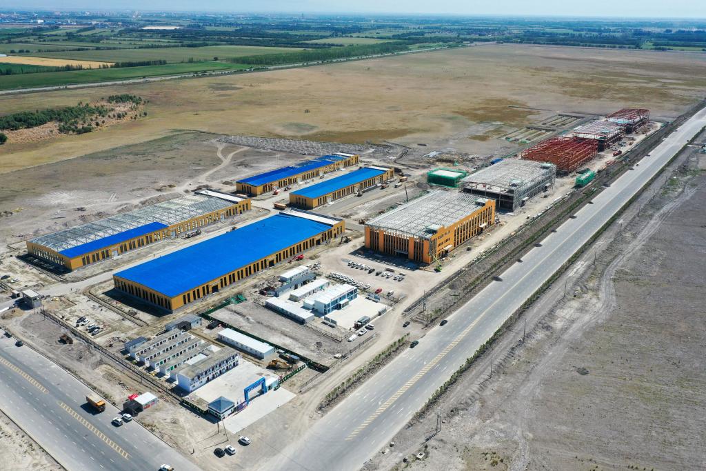 新疆塔城重点开发开放试验区先行发展区正在建设的闽商智能电子产业园(7月22日摄,无人机照片)。新华社记者 丁磊 摄