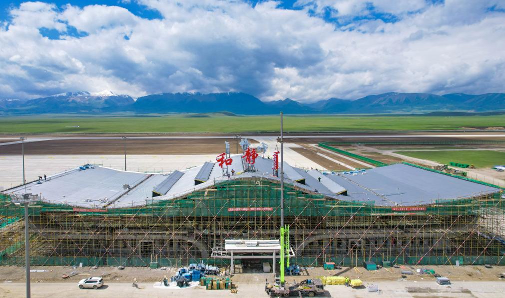 新疆第二座高高原机场——和静巴音布鲁克机场正在有序建设当中(7月17日摄,无人机照片)。新华社记者 丁磊 摄