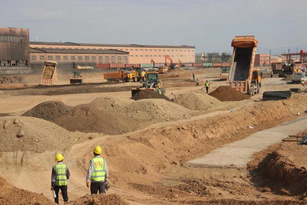 这是5月20日拍摄的阿拉山口站换装二区改扩建项目施工现场。李兵齐 摄
