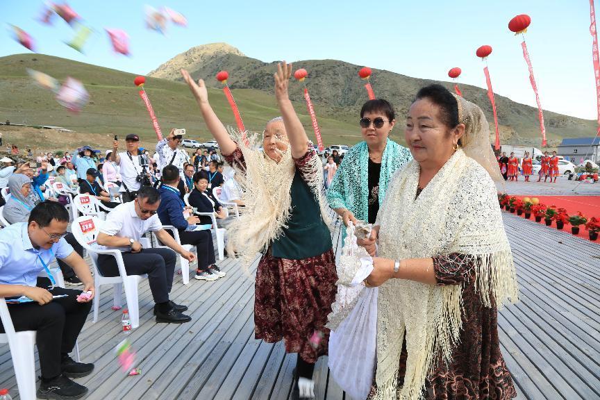 观众王嘉慧说:“我是第一次来三台沟,觉得三台沟景色优美,一路上牛羊成群,看到了很多少数民族的活动,我最喜欢撒糖的环节,觉得接上糖的时候我很幸运。”