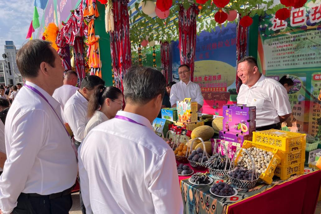 展区内参展品种繁多,包括伽师县特有的伽师新梅、伽师瓜、伽师甜菜、伽师羊,以及伽师县特色初级加工农副产品和精深加工产品,如新梅汁、新梅酱、新梅饮品、伽师瓜干以及各类干果制品等。展销会的举办为伽师县特色农产品市场增添了活力与信心。