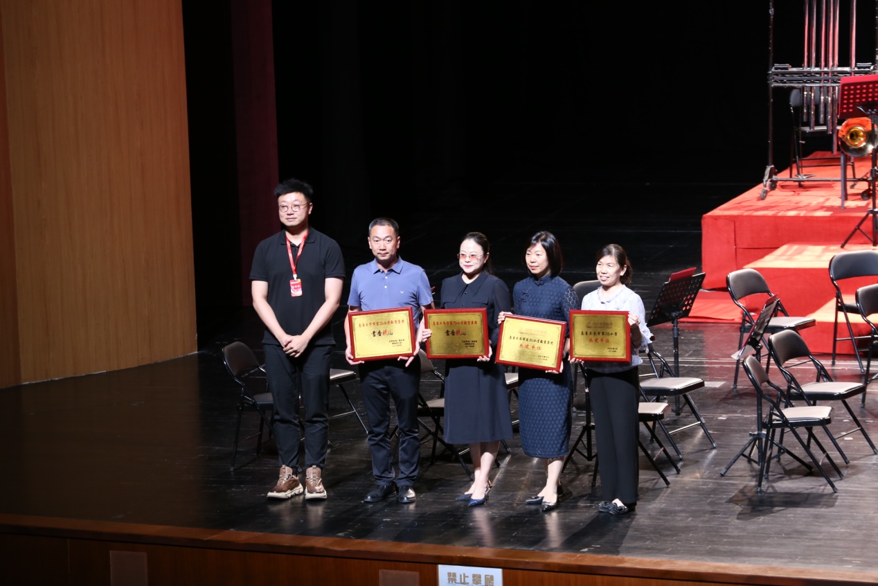 8月12日,金山爱乐乐团“新疆之夜”交响音乐会现场,全国教育广播电视融媒体中心为高新区(新市区)4所学校授予“艺术合作共建校”和“书香校园”牌匾。