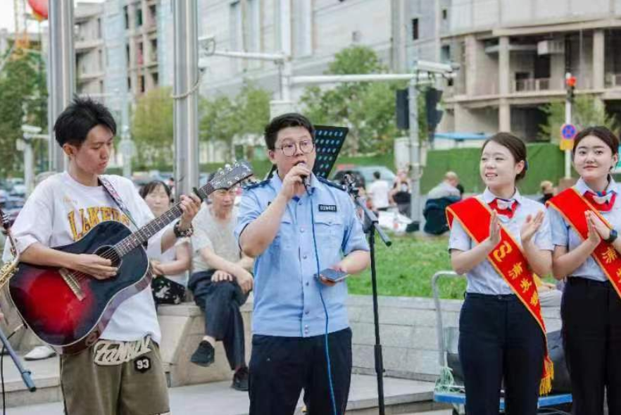 考虑到当天正值周末,民警以轻松愉快的方式,用年轻人喜欢的乐队伴唱吸引过往市民共同学习防范电信网络诈骗、防范经济类犯罪知识。歌声一响起,就吸引了众多来广场散步的居民,动听的歌曲和阵阵鼓掌声将路过的宝妈、萌娃们纷纷吸引了过来,大家纷纷驻足观看,跟着旋律挥舞手臂,悠扬的歌声使在场所有人沉浸其中。