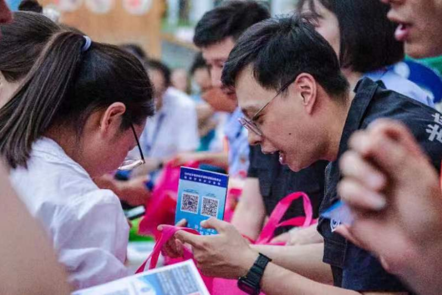 当日,反诈中心民警在舞台边还设置了宣传台,雨伞、钥匙扣、购物袋、文具,展台内所有物品都是只送不卖!在讲解反诈知识的同时,民警们帮助每一位前来打卡的居民下载“国家反诈中心”APP,讲解新型诈骗案例和预防手段,并免费赠送各式各样的反诈小礼品,提醒群众一定要把好“通信门”、守好“钱袋子”、看好“卡片子”。