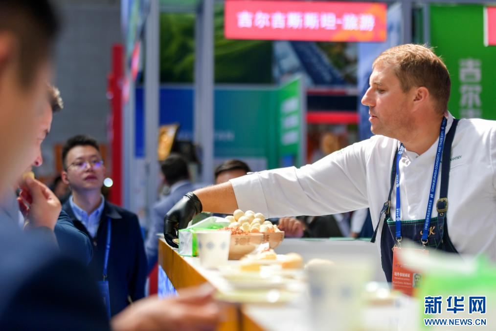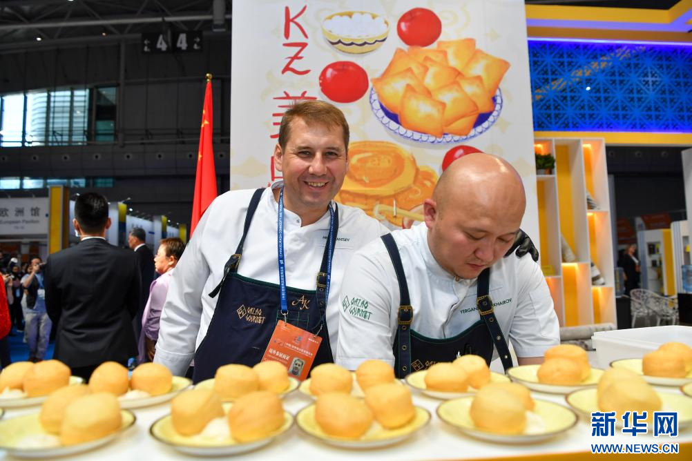 8月17日,来自哈萨克斯坦的厨师在2023(中国)亚欧商品贸易博览会上制作美食。新华社记者 赵戈 摄pagebreak