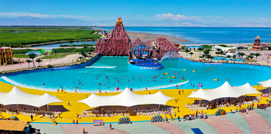 博斯腾湖开启夏日清凉模式,游客体验水上乐趣。年磊 摄