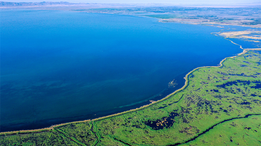 鸟瞰博斯腾湖。年磊 摄