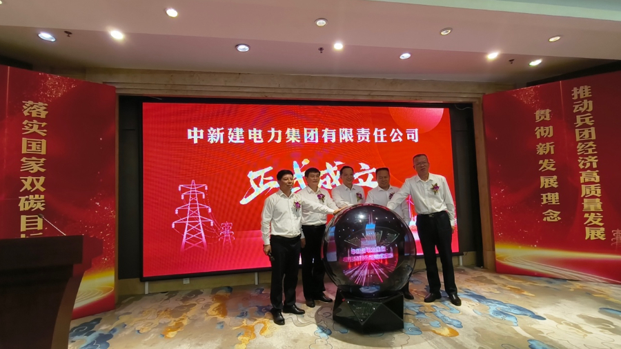 兵团党委、兵团副秘书长董沂峰、兵团党委组织部副部长、公务局局长李学明、兵团国资委党委书记、主任邵春杰、中新建电力集团有限责任公司党委书记、董事长刘伟及党委副书记、总经理张高峰共同为中新建电力集团公司揭牌,宣布公司成立。