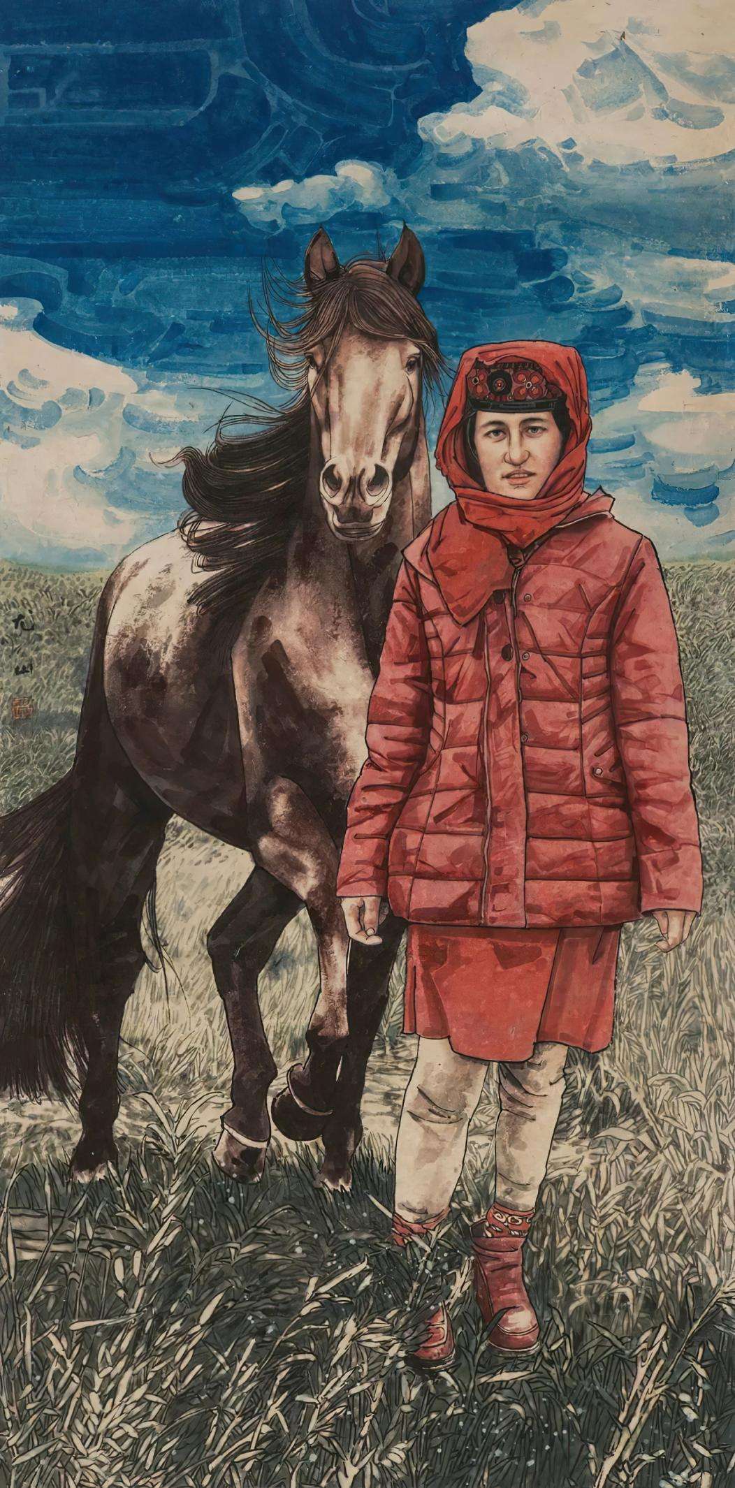 桑皮纸独有的特性,注定了它要和具有悠久历史、独特价值的中国画结缘、生情。参展艺术家、原新疆美术家协会副主席亚里昆·哈孜认为,纸张在人类文明发展史中有着重大意义,桑皮纸制作是中国造纸业的一部分,是一种“你中有我,我中有你”的文化传承。而如新疆美术家协会副主席、新疆教育学院艺术学院院长褚晓莉所言,桑皮纸淡黄的色泽,粗纤维的质感,令人想起新疆的戈壁、沙漠、风蚀峡谷等地形地貌。“桑皮纸上的中国画”品牌创始人、新疆国画院执行院长兼秘书长魏宝山则认为,在桑皮纸和宣纸上创作中国画各有韵味,桑皮纸特性突出,既可充分用水,表现得淋漓尽致的墨韵,又可大胆设色,画出五彩缤纷的重彩,工笔、写意、重彩在桑皮纸上都能呈现出美妙的效果。