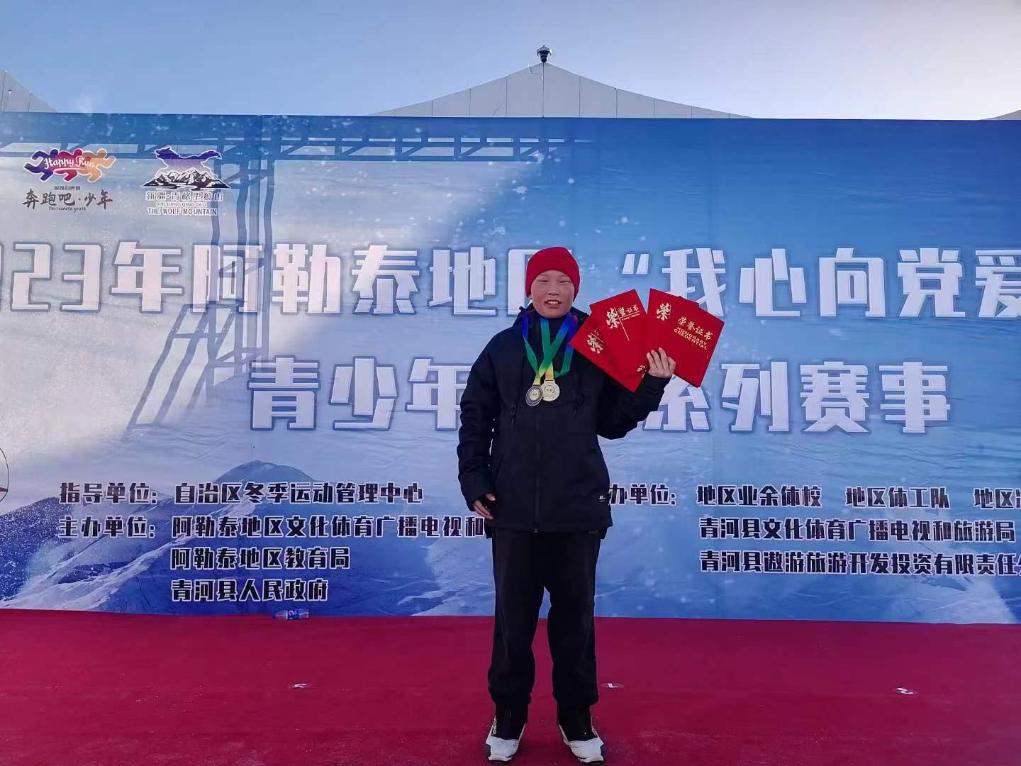 今年初,专攻越野滑雪的他在新疆维吾尔自治区首届冬季运动会青少年越野滑雪比赛中斩获乙组头名。