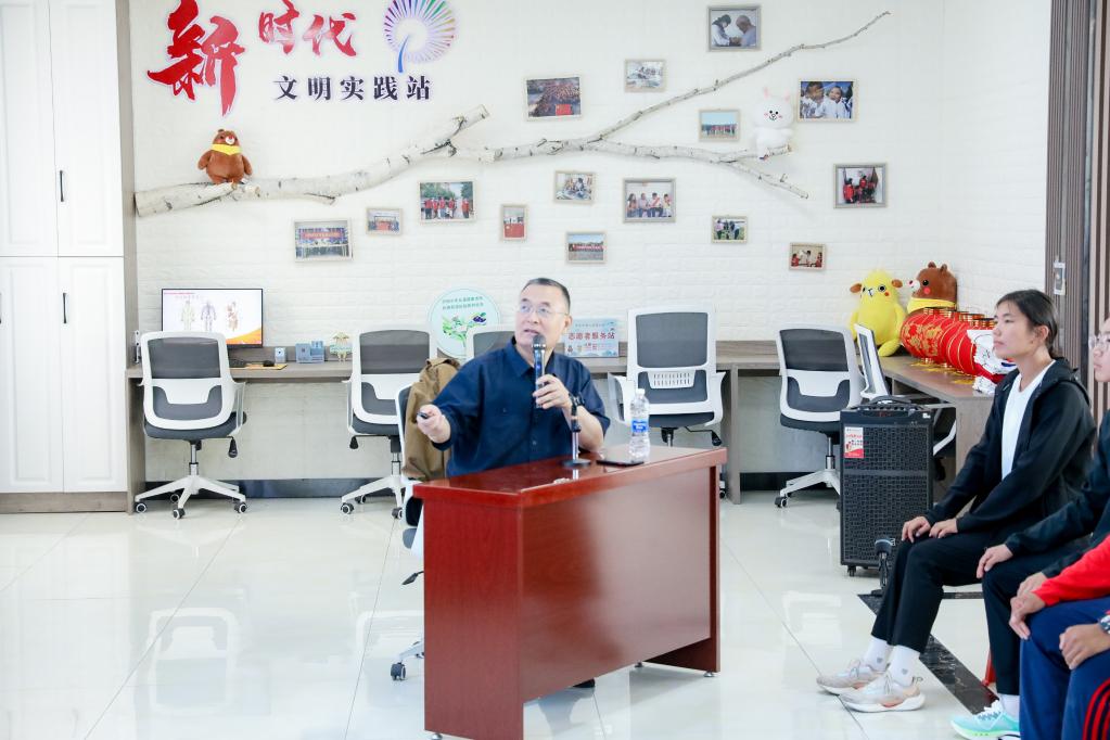 厉彦虎在2023“运动社区”体育公益嘉年华(布尔津站)的运动科学讲堂中为青少年授课。(主办方提供)