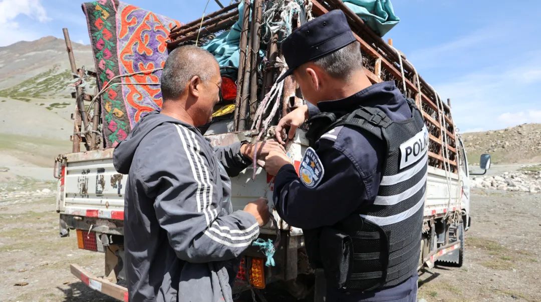 牧民吐鲁木汗·达吾来提一家人为了提早赶往秋季草场,一大早就开始准备,丈夫把500多只羊群赶往了目的地,妻子一人留在夏草场整理搬运的家务,等待拉运货车装载行李,为了给牧民提供便利,辖区民警第一时间赶到牧民家,帮助牧民及时搬运装载需要的物品,贴心的服务让牧民暖心。