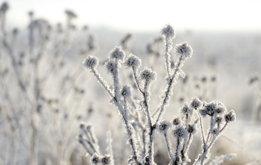 新疆昭苏特克斯河国家湿地公园的雾凇景观(2019年12月13日摄)。新华社记者 丁磊 摄
