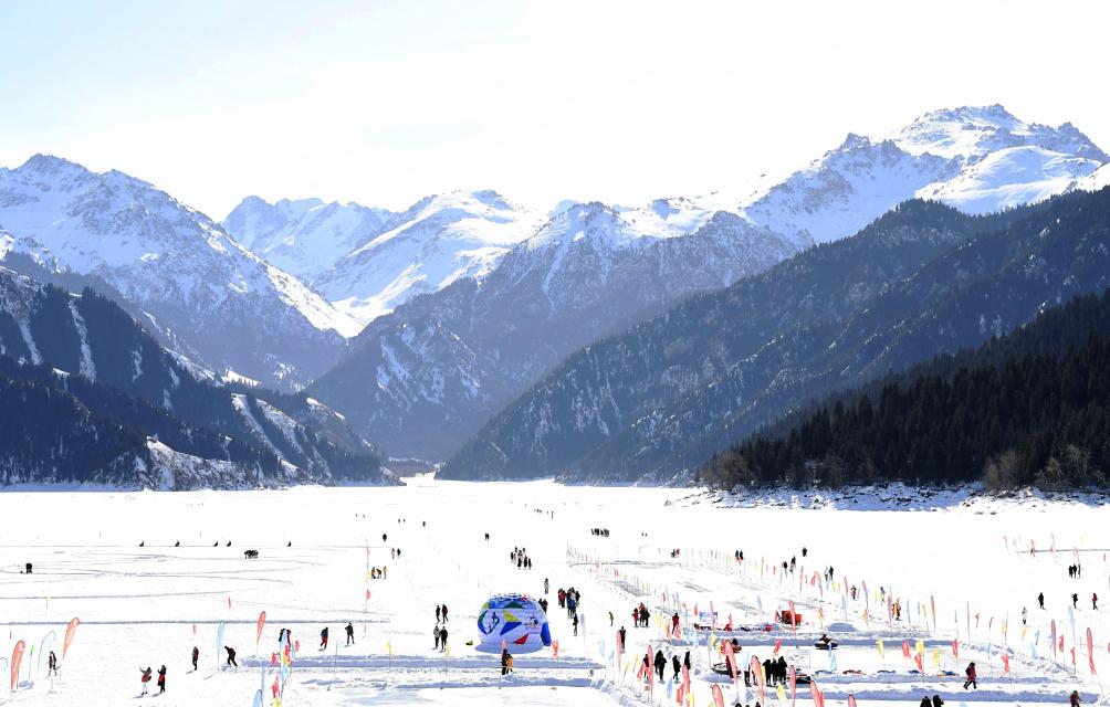 游客在新疆天池景区游玩(2019年2月17日摄)。新华社记者 沙达提 摄