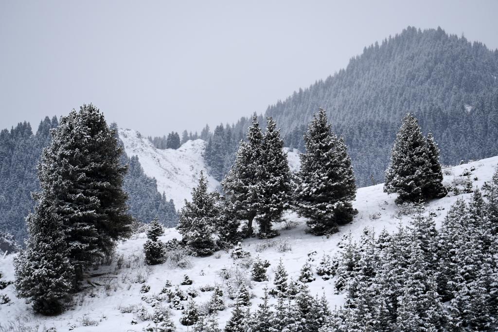 在新疆车师古道拍摄的被雪覆盖的松树(2021年1月24日摄)。新华社记者 丁磊 摄