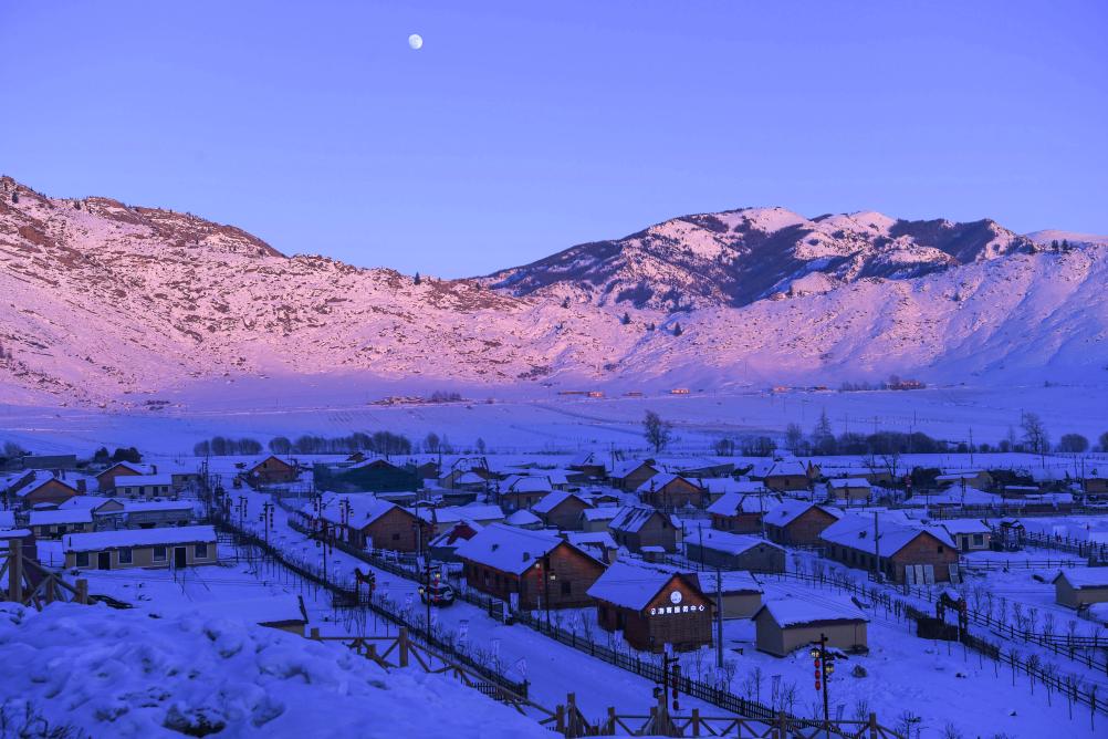 新疆富蕴县境内的阿尔泰山脉夕阳(2019年1月19日摄)。新华社记者 沙达提 摄