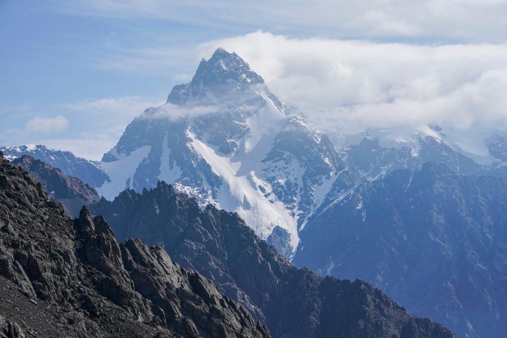 新疆乌鲁木齐市达坂城区白杨沟内拍摄的天山博格达峰(2018年7月29日摄)。新华社记者 胡虎虎 摄