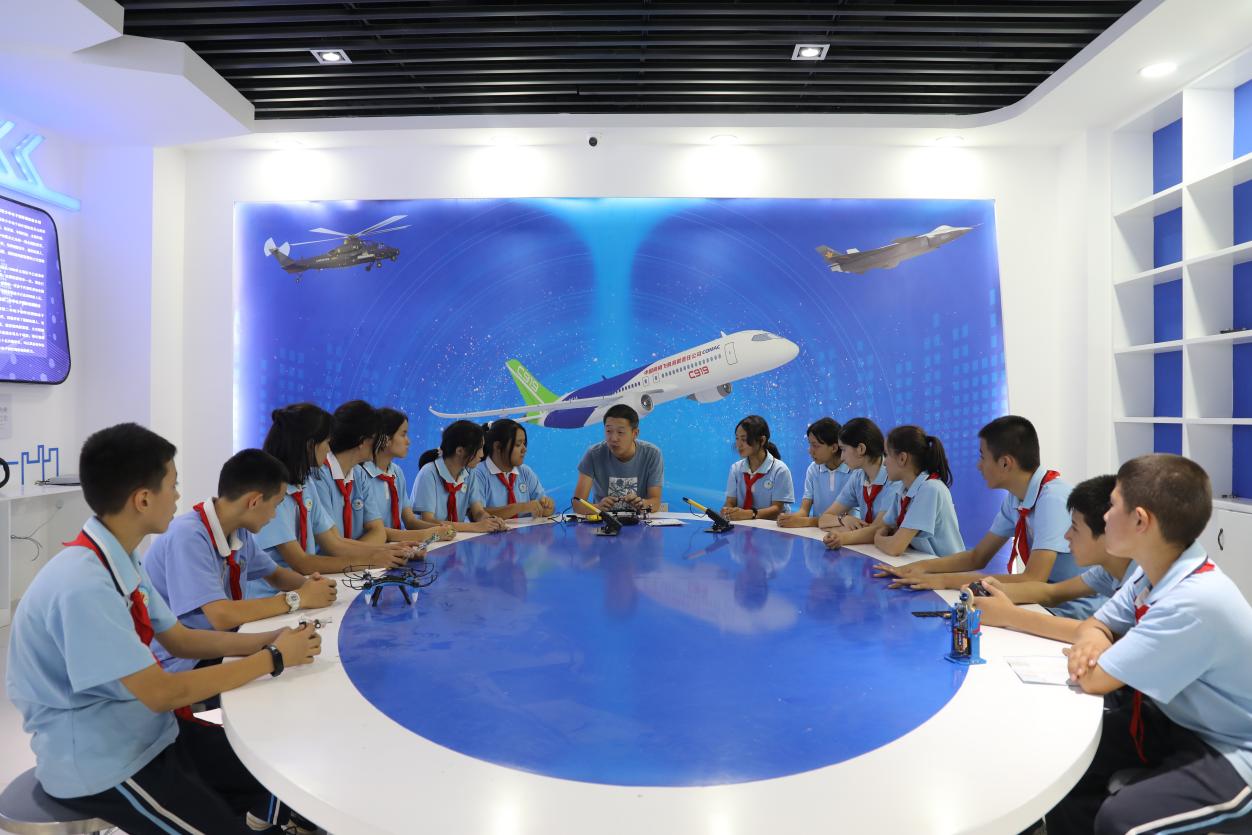 航空模型是集设计、制作、模拟、飞行为一体的实践项目,航模室将理论和实践相结合,以课程的形式组织同学们学习飞行理论知识,通过模拟训练掌握遥控技能。飞向空中的的飞机带着学生的梦想翱翔于天空,在学生的心中播下了科技的种子。