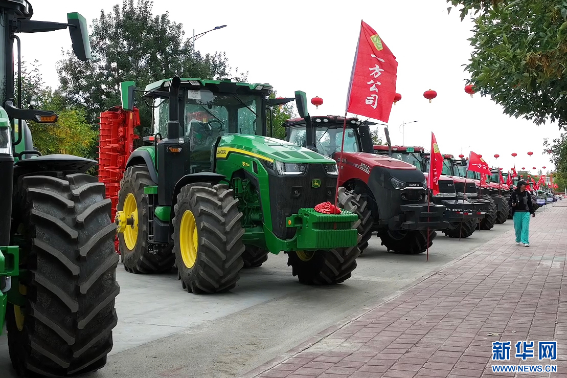 大型农业机械整齐排列引人驻足。新华网发 董发勇 摄