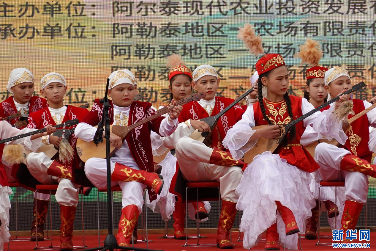 孩子们在丰收节中演奏冬不拉合奏《丰收的喜悦》。新华网发 张珏 摄